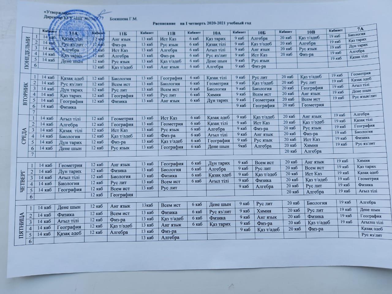 Расписание онлайн уроков 1-2 смены на 2021-2022 учебный год