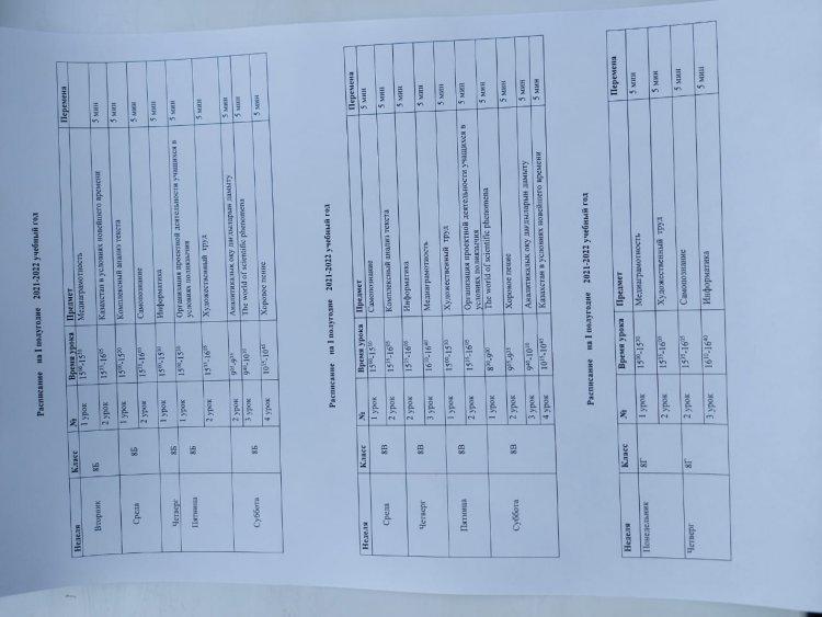 Расписание онлайн уроков 1-2 смены на 2021-2022 учебный год