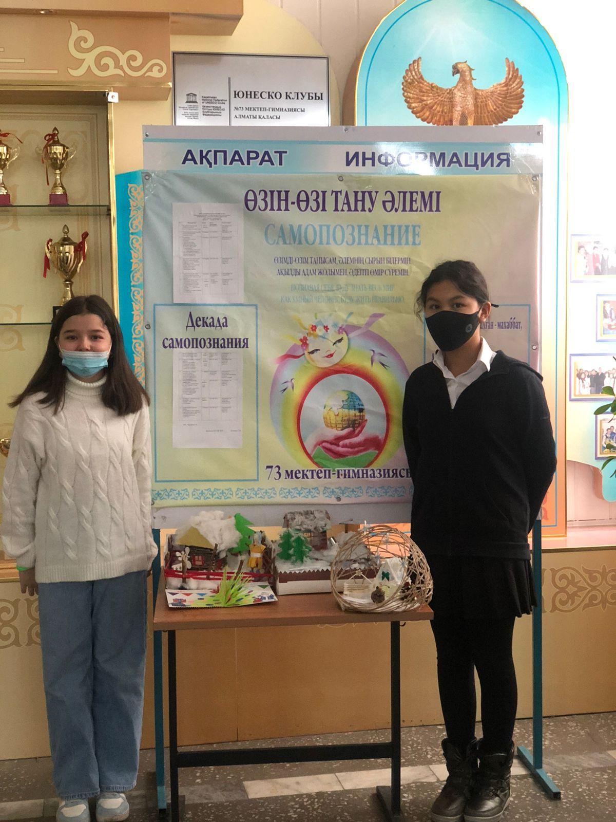 Организация и проведение выставки творческих рабат учащихся 1-4 классов по теме: «Созвучие с окружающим миром». Дети в течение декады по самопознанию будут писать в открытки с пожеланиями себе, детям, одноклассникам и всем кому пожелают. С старшим и среднем звеном связи с эпид.ситуацием линейка проводилось через видеоконференцию.