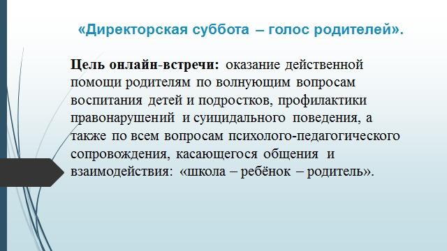 » Онлайн встречи "Директорская суббота- голос родителей"