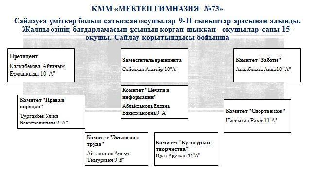 Мектепшілік парламент президентін анықтау «Парламент президенті 2021-2022»сайлау » КГУ «Школа-гимназия №73» Управления образования г.Алматы