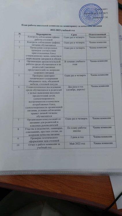 12 қыркүйек 2022 0 1 2 3 4 5 План работы школьной комиссии по мониторингу за качеством питания 2022-2023 учебный год